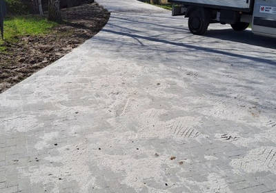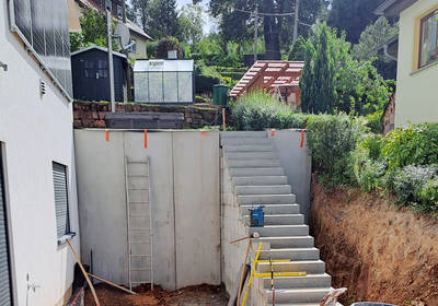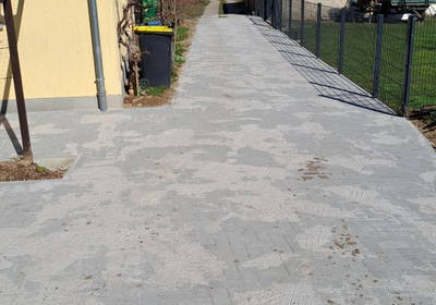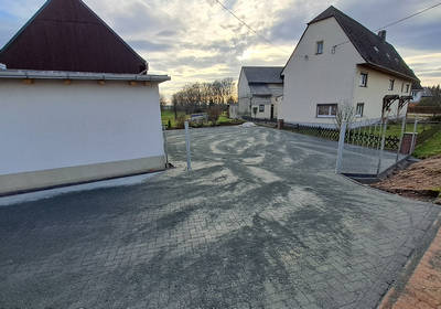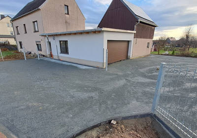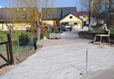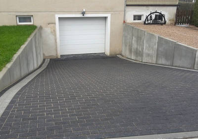 Neugestaltung einer Garageneinfahrt mit Winkelstützen und beheizten Fahrspuren in 09326 Geringswalde