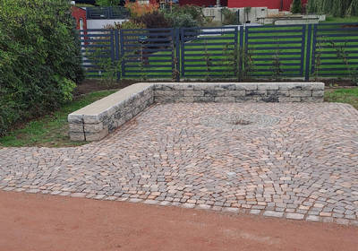 Erneuerung von Außenanlagen in 09326 Geringswalde Pflasterarbeiten und Herstellung einer Sitzmauer